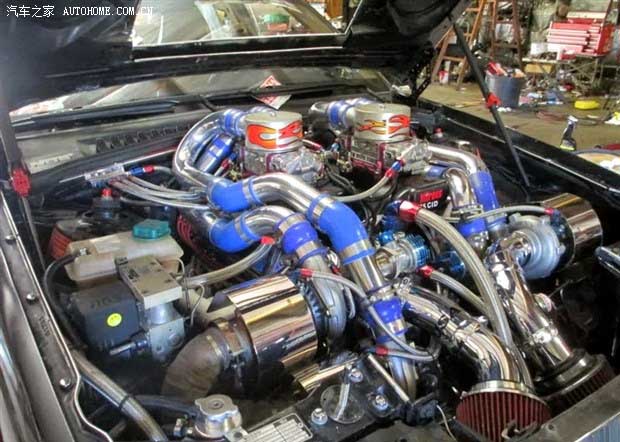 這輛1992年的沃爾沃960換裝了一臺通用旗下的565 DART RACING BLOCK V8發動機,并安裝了四顆A/R 60渦輪增壓器。此外,還有定制的氣缸蓋、活塞、曲軸、電動燃油泵以及散熱系統等,一同其搭載的發動機迸發出這恐怖的2200馬力最大功率,而峰值扭矩為1354牛·米。你從它那復雜錯綜的發動機艙里也能看出,這臺發動機有多么厲害。